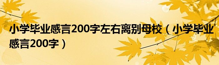 关于小学毕业感言200字左右离别母校,小学毕业感言200字这个很多人还不知道,今天菲菲来为大家解答以上的问题,现在让我们一起来看看吧!