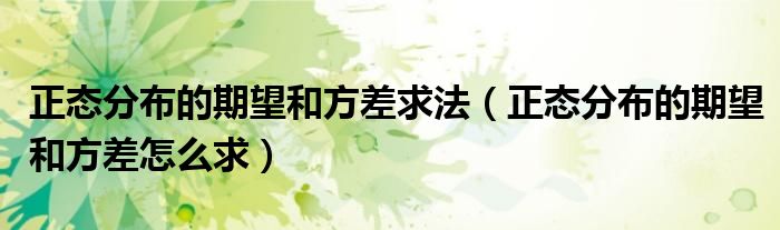 关于正态分布的期望和方差求法,正态分布的期望和方差怎么求这个很多人还不知道,今天菲菲来为大家解答以上的问题,现在让我们一起来看看吧!