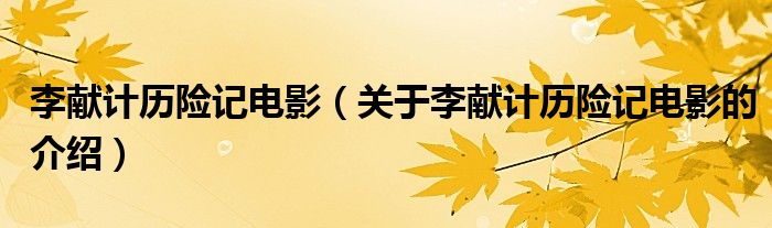 大家好,今天小乐来为大家解答以上的问题。李献计历险记电影,关于李献计历险记电影的介绍很多人还不知道,现在让我们一起来看看吧!