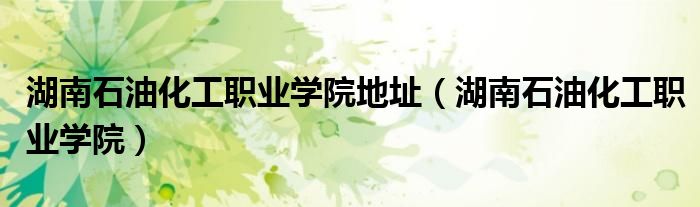 关于湖南石油化工职业学院地址,湖南石油化工职业学院这个很多人还不知道,今天菲菲来为大家解答以上的问题,现在让我们一起来看看吧!
