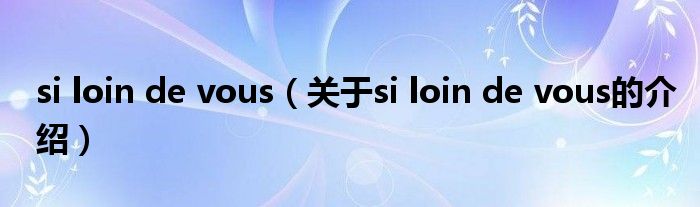 大家好,今天小乐来为大家解答以上的问题。si loin de vous,关于si loin de vous的介绍很多人还不知道,现在让我们一起来看看吧!