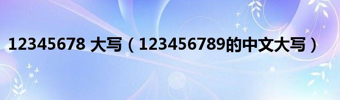 关于12345678 大写,123456789的中文大写这个很多人还不知道,今天菲菲来为大家解答以上的问题,现在让我们一起来看看吧!