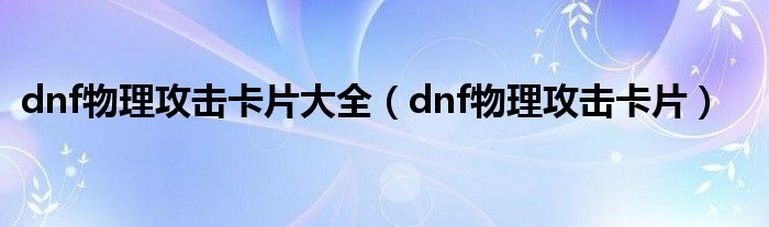 关于dnf物理攻击卡片大全,dnf物理攻击卡片这个很多人还不知道,今天菲菲来为大家解答以上的问题,现在让我们一起来看看吧!