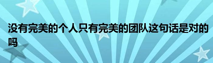 关于没有完美的个人只有完美的团队这句话是对的吗这个很多人还不知道,今天菲菲来为大家解答以上的问题,现在让我们一起来看看吧!