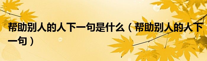 关于帮助别人的人下一句是什么,帮助别人的人下一句这个很多人还不知道,今天菲菲来为大家解答以上的问题,现在让我们一起来看看吧!