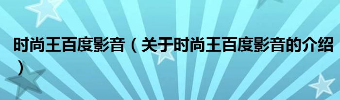 时尚王百度影音(关于时尚王百度影音的介绍)