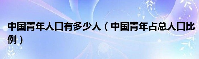 关于中国青年人口有多少人,中国青年占总人口比例这个很多人还不知道,今天菲菲来为大家解答以上的问题,现在让我们一起来看看吧!