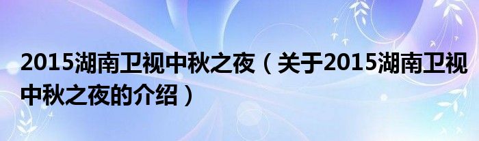 2015湖南卫视中秋之夜(关于2015湖南卫视中秋之夜的介绍)
