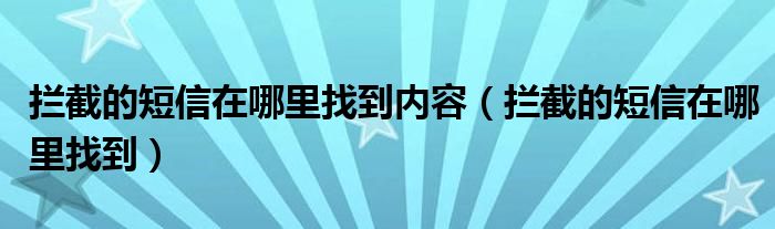 大家好,小晋来为大家解答以下问题,关于拦截的短信在哪里找到内容,拦截的短信在哪里找到很多人还不知道,今天让我们一起来看看吧!