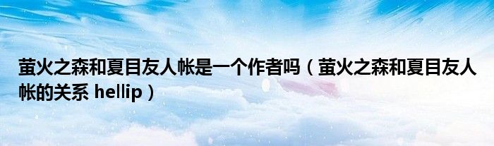 关于萤火之森和夏目友人帐是一个作者吗,萤火之森和夏目友人帐的关系 hellip这个很多人还不知道,今天菲菲来为大家解答以上的问题,现在让我们一起来看看吧!