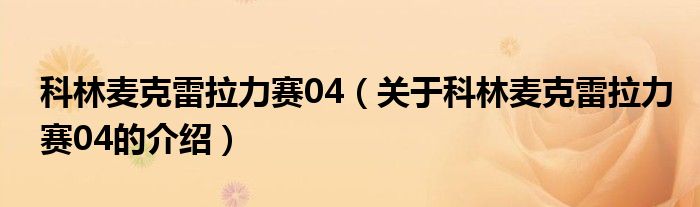 大家好,今天小乐来为大家解答以上的问题。科林麦克雷拉力赛04,关于科林麦克雷拉力赛04的介绍很多人还不知道,现在让我们一起来看看吧!