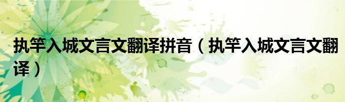 关于执竿入城文言文翻译拼音,执竿入城文言文翻译这个很多人还不知道,今天菲菲来为大家解答以上的问题,现在让我们一起来看看吧!