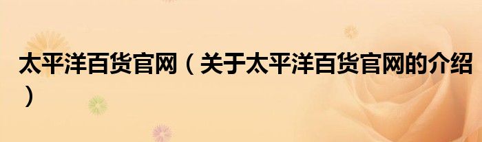 太平洋百货官网(关于太平洋百货官网的介绍)