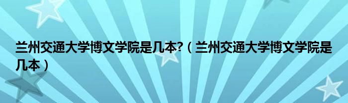 关于兰州交通大学博文学院是几本?,兰州交通大学博文学院是几本这个很多人还不知道,今天菲菲来为大家解答以上的问题,现在让我们一起来看看吧!