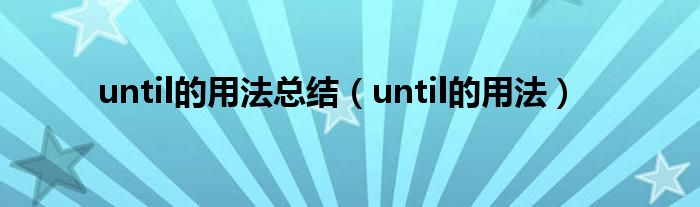 关于until的用法总结,until的用法这个很多人还不知道,今天菲菲来为大家解答以上的问题,现在让我们一起来看看吧!