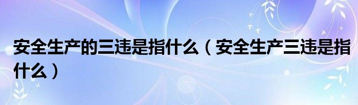 关于安全生产的三违是指什么,安全生产三违是指什么这个很多人还不知道,今天菲菲来为大家解答以上的问题,现在让我们一起来看看吧!