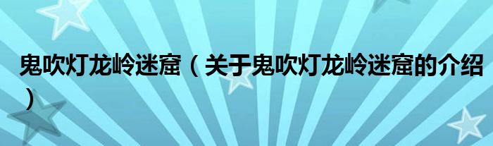 鬼吹灯龙岭迷窟(关于鬼吹灯龙岭迷窟的介绍)