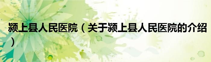 颍上县人民医院(关于颍上县人民医院的介绍)