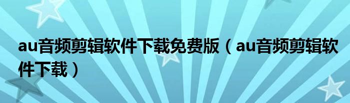 关于au音频剪辑软件下载免费版,au音频剪辑软件下载这个很多人还不知道,今天菲菲来为大家解答以上的问题,现在让我们一起来看看吧!