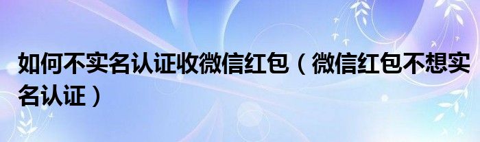 如何不实名认证收微信红包(微信红包不想实名认证)
