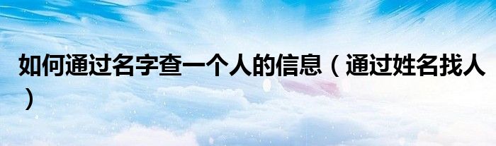 关于如何通过名字查一个人的信息,通过姓名找人这个很多人还不知道,今天菲菲来为大家解答以上的问题,现在让我们一起来看看吧!