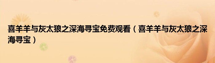 关于喜羊羊与灰太狼之深海寻宝免费观看,喜羊羊与灰太狼之深海寻宝这个很多人还不知道,今天菲菲来为大家解答以上的问题,现在让我们一起来看看吧!