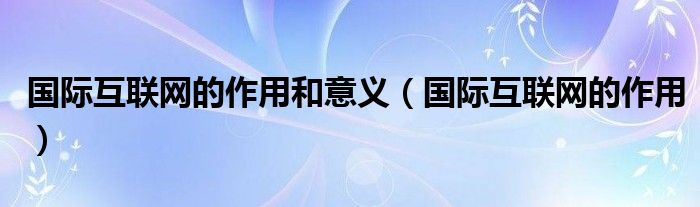 关于国际互联网的作用和意义,国际互联网的作用这个很多人还不知道,今天菲菲来为大家解答以上的问题,现在让我们一起来看看吧!