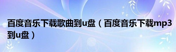 关于百度音乐下载歌曲到u盘,百度音乐下载mp3到u盘这个很多人还不知道,今天菲菲来为大家解答以上的问题,现在让我们一起来看看吧!