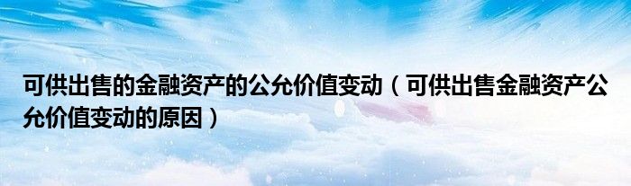 关于可供出售的金融资产的公允价值变动,可供出售金融资产公允价值变动的原因这个很多人还不知道,今天菲菲来为大家解答以上的问题,现在让我们一起来看看吧!