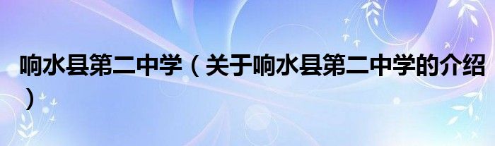 大家好,小都来为大家解答以上的问题。响水县第二中学,关于响水县第二中学的介绍很多人还不知道,现在让我们一起来看看吧!