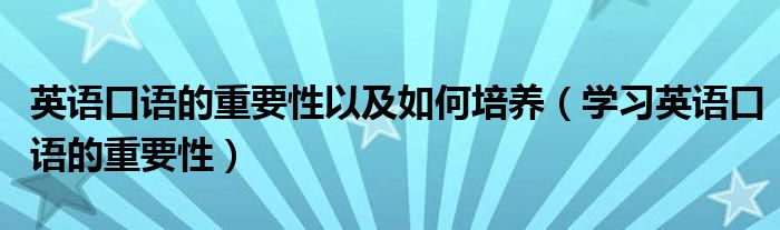关于英语口语的重要性以及如何培养,学习英语口语的重要性这个很多人还不知道,今天菲菲来为大家解答以上的问题,现在让我们一起来看看吧!