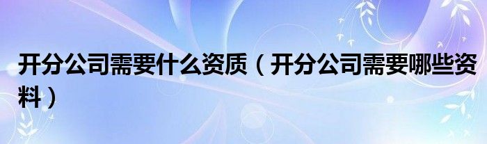 关于开分公司需要什么资质,开分公司需要哪些资料这个很多人还不知道,今天菲菲来为大家解答以上的问题,现在让我们一起来看看吧!