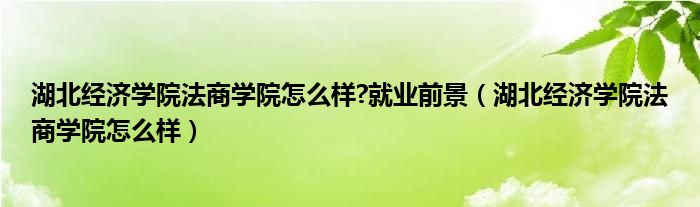 关于湖北经济学院法商学院怎么样?就业前景,湖北经济学院法商学院怎么样这个很多人还不知道,今天菲菲来为大家解答以上的问题,现在让我们一起来看看吧!