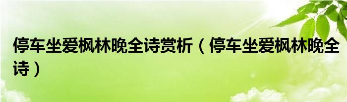 关于停车坐爱枫林晚全诗赏析,停车坐爱枫林晚全诗这个很多人还不知道,今天菲菲来为大家解答以上的问题,现在让我们一起来看看吧!