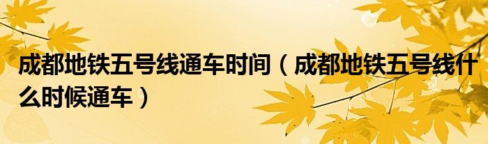关于成都地铁五号线通车时间,成都地铁五号线什么时候通车这个很多人还不知道,今天菲菲来为大家解答以上的问题,现在让我们一起来看看吧!