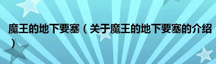 大家好,小都来为大家解答以上的问题。魔王的地下要塞,关于魔王的地下要塞的介绍很多人还不知道,现在让我们一起来看看吧!