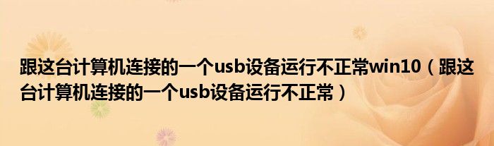 大家好,小飞来为大家解答以上问题,跟这台计算机连接的一个usb设备运行不正常win10,跟这台计算机连接的一个usb设备运行不正常很多人还不知道,现在让我们一起来看看吧!
