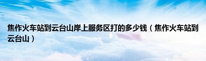 大家好,小晋来为大家解答以下问题,关于焦作火车站到云台山岸上服务区打的多少钱,焦作火车站到云台山很多人还不知道,今天让我们一起来看看吧!