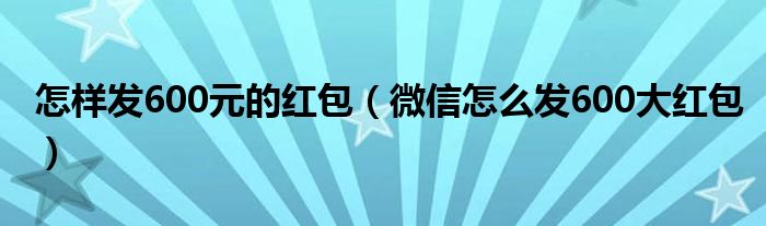 大家好,小晋来为大家解答以下问题,关于怎样发600元的红包,微信怎么发600大红包很多人还不知道,今天让我们一起来看看吧!
