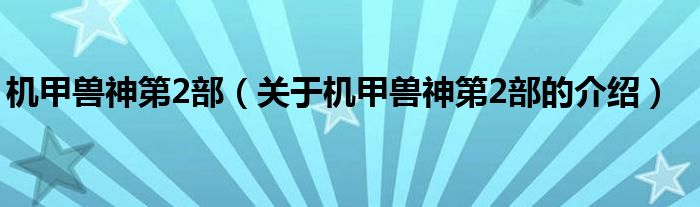 大家好,小都来为大家解答以上的问题。机甲兽神第2部,关于机甲兽神第2部的介绍很多人还不知道,现在让我们一起来看看吧!