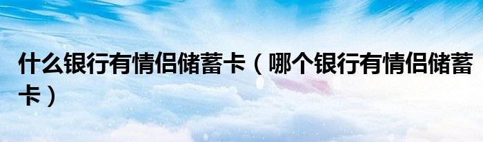 大家好,小晋来为大家解答以下问题,关于什么银行有情侣储蓄卡,哪个银行有情侣储蓄卡很多人还不知道,今天让我们一起来看看吧!