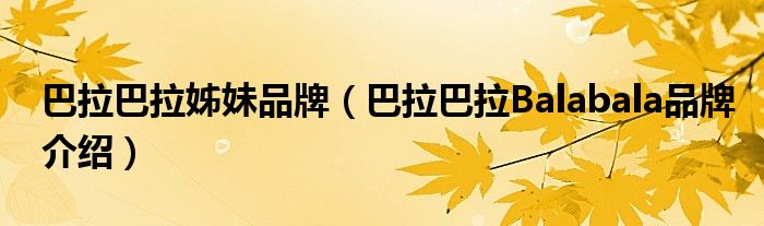 最佳答案大家好,小源来为大家解答以上问题。巴拉巴拉姊妹品牌,巴拉巴拉Balabala品牌介绍很多人还不知道,现在让我们一起来看看吧!Balabala品牌创立于2002年,产品已覆盖童装、童鞋、家居、旅行等品类。是国内领先的儿童时尚生活方式品牌。品牌倡导“童年不一样”的理念,倡导用爱发现孩子的不同,尊重孩...