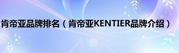 大家好,小源来为大家解答以上问题。肯帝亚品牌排名,肯帝亚KENTIER品牌介绍很多人还不知道,现在让我们一起来看看吧!