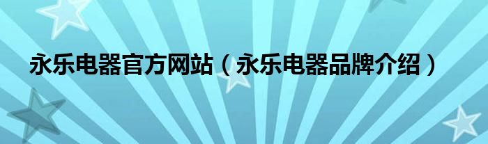 永乐电器官方网站(永乐电器品牌介绍)