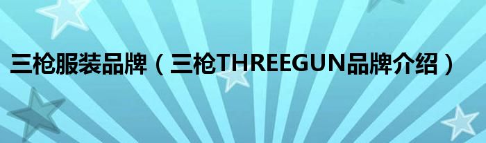 三枪服装品牌(三枪THREEGUN品牌介绍)
