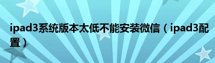 ipad3系统版本太低不能安装微信,ipad3配置很多人还不知道,乐乐来为大家解答以上问题,现在让我们一起来看看吧!