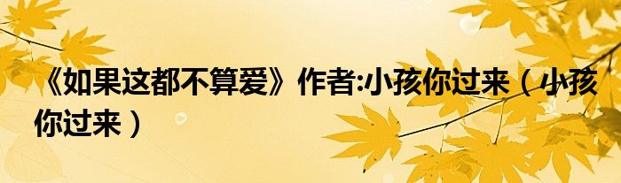 关于《如果这都不算爱》作者:小孩你过来,小孩你过来这个很多人还不知道,今天菲菲来为大家解答以上的问题,现在让我们一起来看看吧!