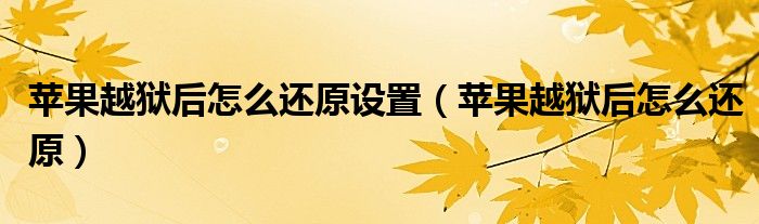 大家好,小飞来为大家解答以上问题,苹果越狱后怎么还原设置,苹果越狱后怎么还原很多人还不知道,现在让我们一起来看看吧!