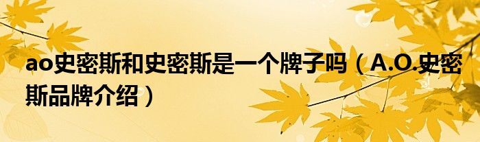 大家好,小源来为大家解答以上问题。ao史密斯和史密斯是一个牌子吗,A.O.史密斯品牌介绍很多人还不知道,现在让我们一起来看看吧!