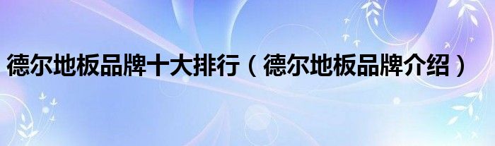 大家好,小源来为大家解答以上问题。德尔地板品牌十大排行,德尔地板品牌介绍很多人还不知道,现在让我们一起来看看吧!